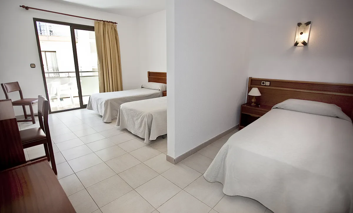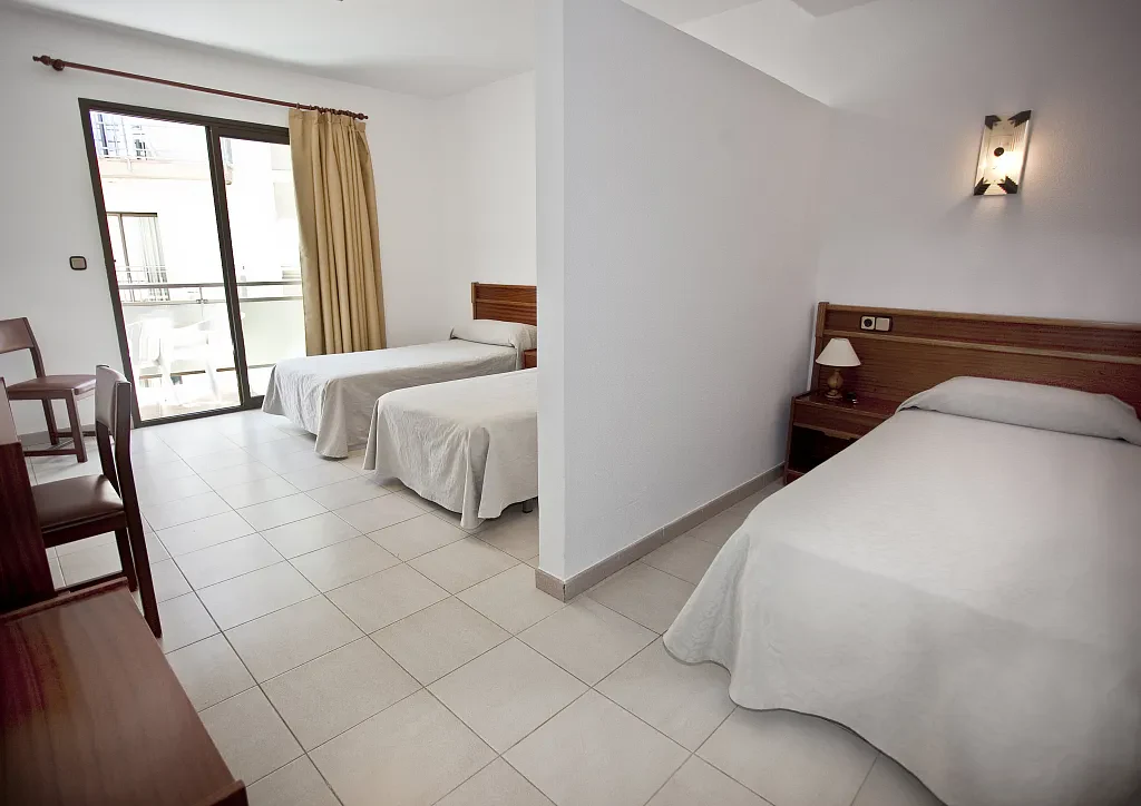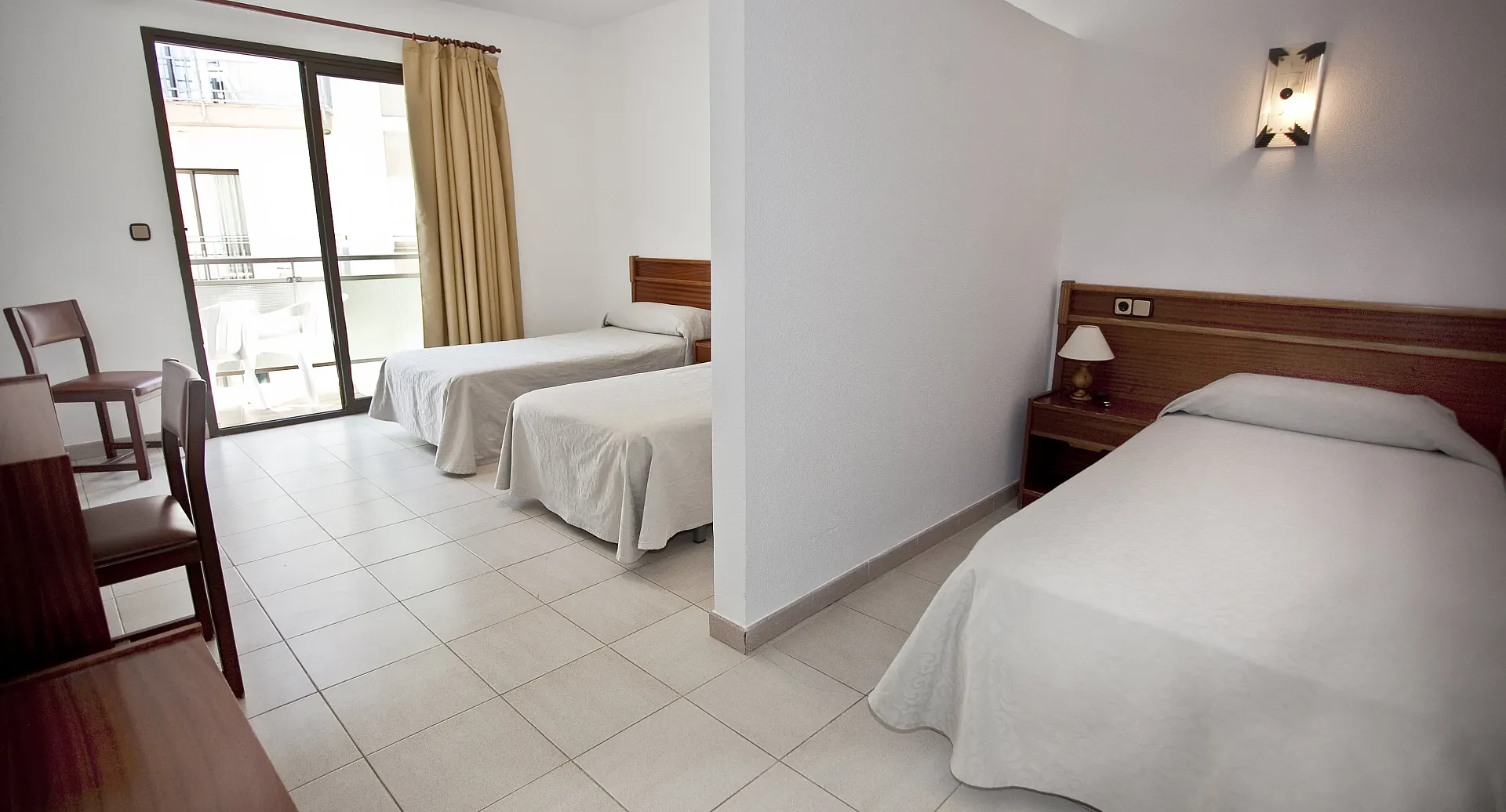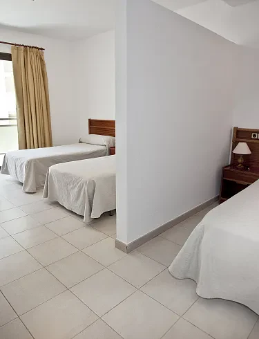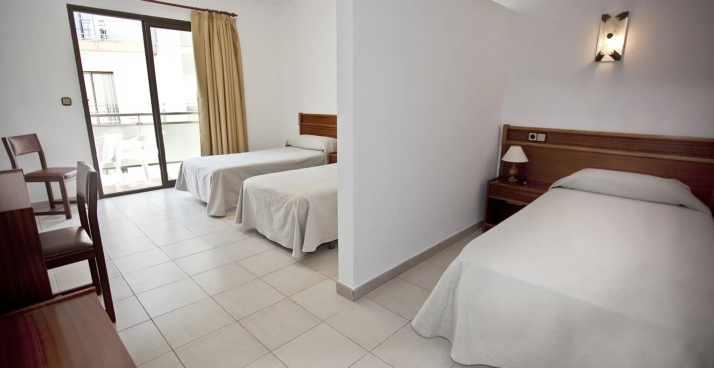 The Triple room at Hotel Beri offers a spacious and comfortable space, with three single beds or one double bed and one single bed, ideal for families or groups looking for comfort and privacy in a single environment.